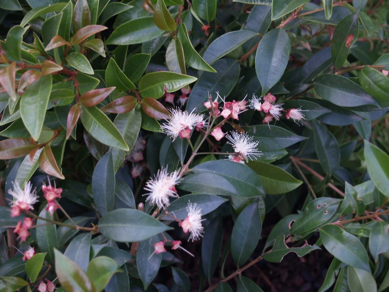 This is a shapely, densely foliaged evergreen tree, bearing shiny dark-red new growth that matures into rich, dark green leaves.
