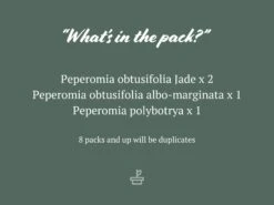 Pepper-omia Pack. Four of our preppiest peperomia fellas! The boys boast thick, fleshy, smart leaves that contribute to their drought tolerance and vigour. If you haven’t experienced much luck with houseplants, you’re going to love the boys and their brilliant foliage. Each Peperomia is so different from one to the next that it’s difficult to see if they even are from the same tribe.