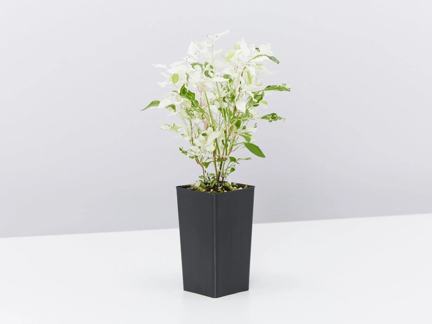 Alternanthera ficoidea Snow on the Mountain – Related to the more well-known Joseph’s Coat is a fast-growing shrub grown for its variegated, showy foliage. The new foliage appears at the tips of the plant in dense, pure white clusters. The mature leaves are crinkled and have splashes of green, white and pink that looks like snow on a mountain. These little babies form a nice mounding habit and are easily managed with a quick prune.Â