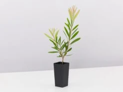 Callistemon Snow Burst ‘CNU07’ is a compact, hardy, evergreen, native with fine green leaves and bursts of white bottle brush flowers. Perfect as a compact hedge and for attracting native birds and bees to your yard.