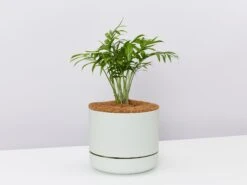They will grow to a metre high over time. When they are smaller they look fresh on a tabletop or sideboard and as they grow larger you can move them to the floor. If you want your palm to grow bigger, re-pot him regularly and feed him with a good quality fertiliser.