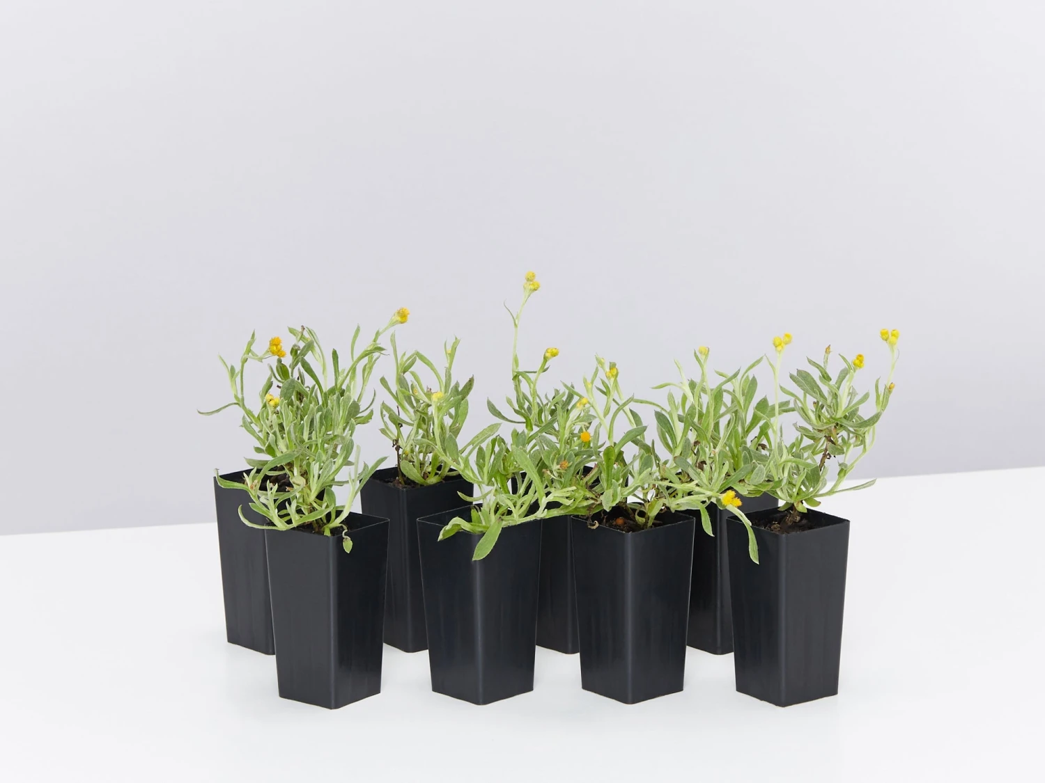 Chrysocephalum apiculatum also goes by the cutest name – Yellow Buttons. It is a short living (2-5 years) perennial herb native to Australia. This little Yellow Buttons has soft silvery-grey foliage with papery yellow button flowers that appear from spring to autumn. It is an easy-going groundcover that is low maintenance and very cute.Â