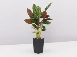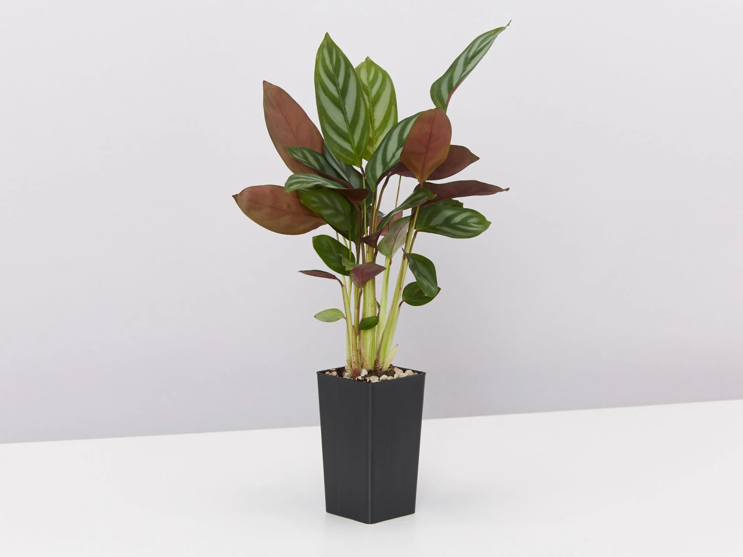 Ctenanthe enjoy lower light levels and suit an office desk, table top, or that drab unit that’s stuck in a corner. She also thrives in a shaded tropical garden letting through light to shorter plants beneath her slender stems.
