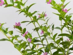 Cuphea hyssopifolia – Mauve, also known as “False Heather” is a small, evergreen, fast growing shrub with bright green glossy leaves and produces dainty mauve flowers year-round. Tolerating full sun to semi-shade, it is a very hardy plant, ideal as a low hedge, for garden borders, in rockeries or in pots. They respond well to light trimming.
