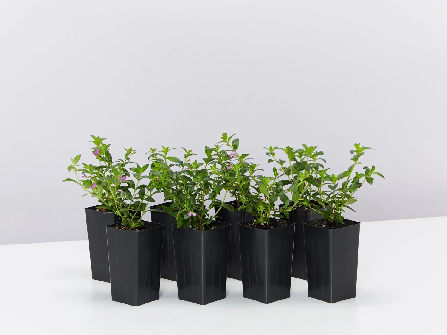 The Cuphea mexicana compacta Purple also goes by the name Mexican Heather. It is a fast growing , no fuss shrub perfect as a low hedge. It has small, glossy green leaves and purple flowers that appear throughout the year.Â
