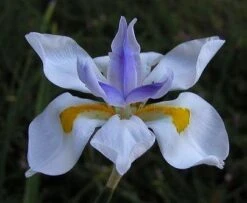 - White iris-like flowers, with yellow and lilac blotches