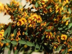 Eutaxia obovate is a beautiful fast growing native shrub perfect for adding colour to coastal gardens. Also known as the bacon and egg plant, its small lime green leaves make the perfect backdrop for the gorgeous pea shaped yellow and red flowers that cover the shrub in winter to early summer. Perfect as a border plant it is super hardy and low maintenance and will attract the birds and the bees.Â