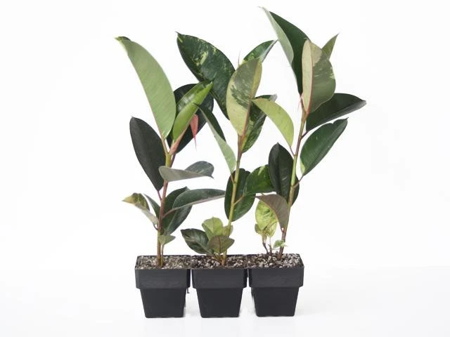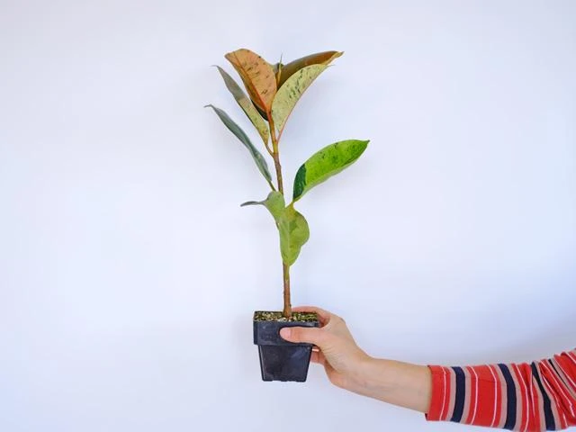 The Ficus elastica shivereana is an extremely rare and unique variety of the ficus family. The foliage is light green with pink-orange flecks. This plant does well indoors and prefers a bright indirect light position. We also offer Ficus Shivereana plants in tube stock pots.