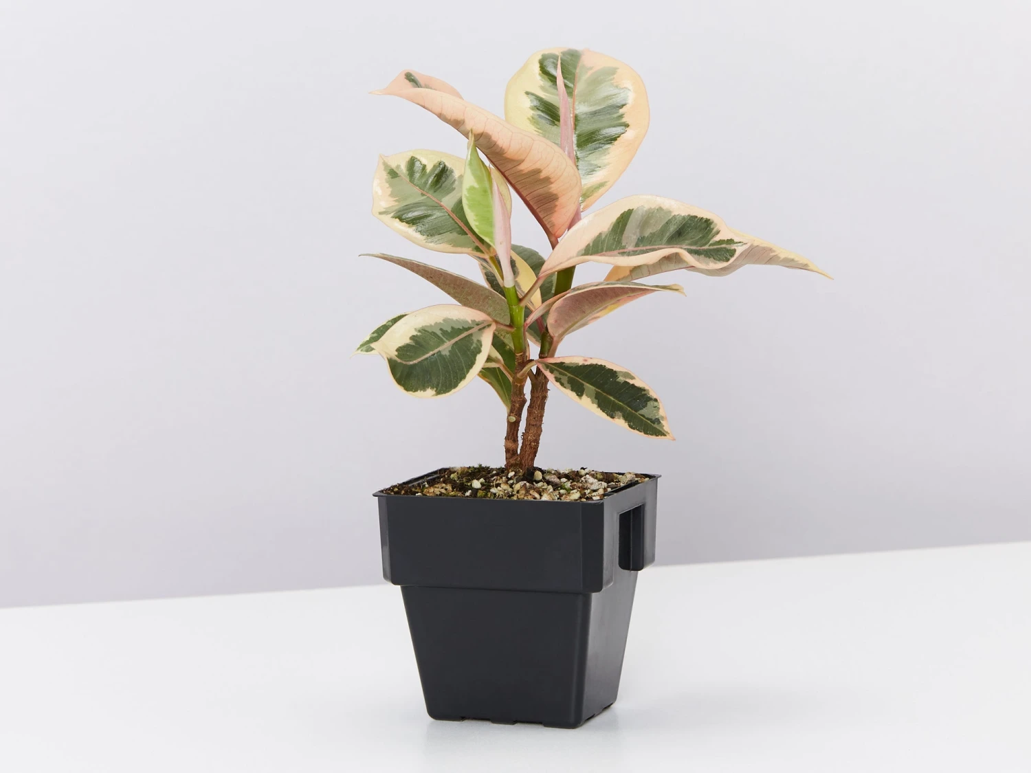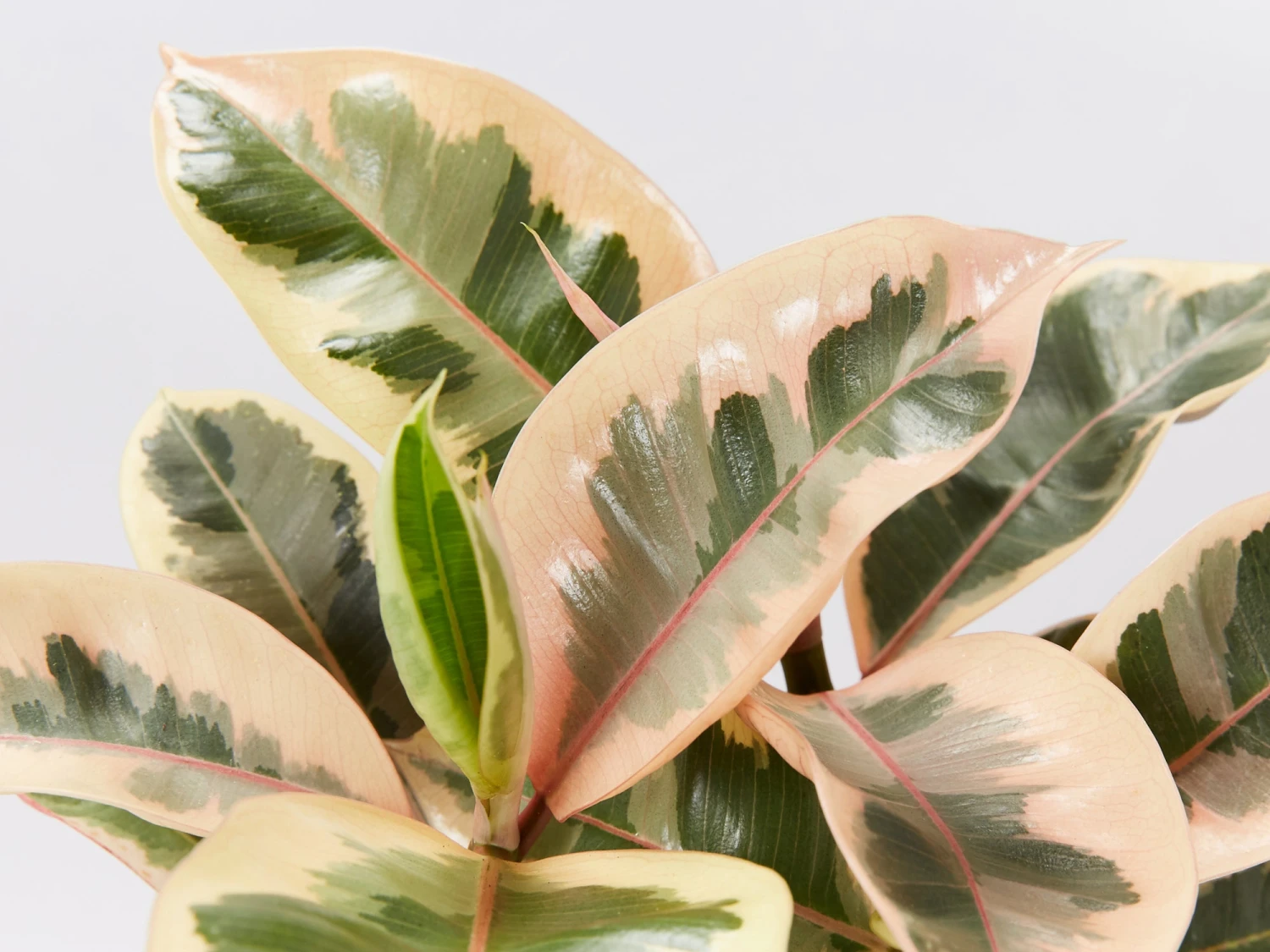 Ficus Elastica Tineke is a crazy mix of green, cream and pink. The rubbery new leaves pop out in attractive burgundy that fades as she matures. It’s a kaleidoscope of shades just perfect for fans of colour.