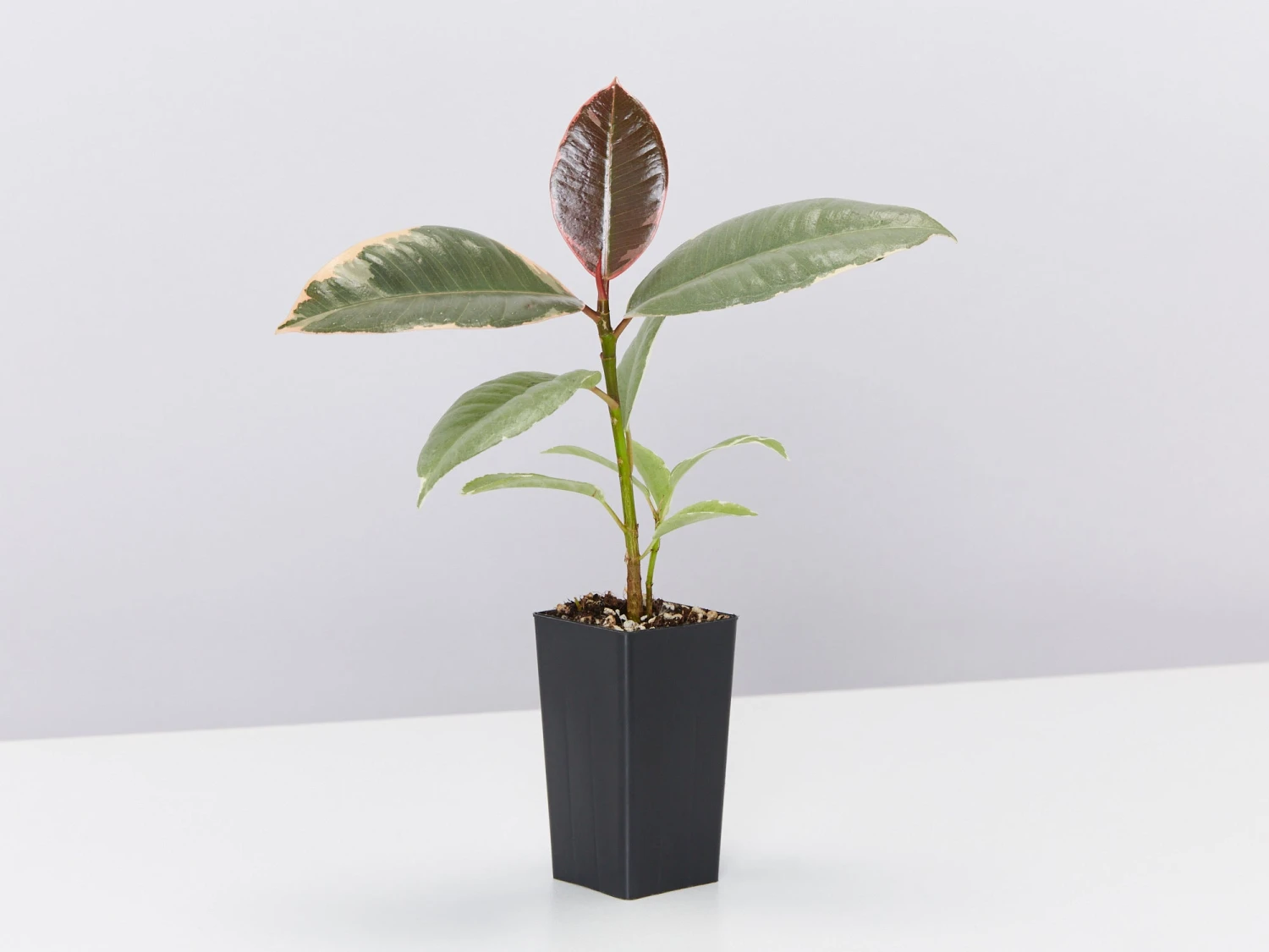 Ficus Elastica Tineke is a crazy mix of green, cream and pink. The rubbery new leaves pop out in attractive burgundy that fades as she matures. It’s a kaleidoscope of shades just perfect for fans of colour.