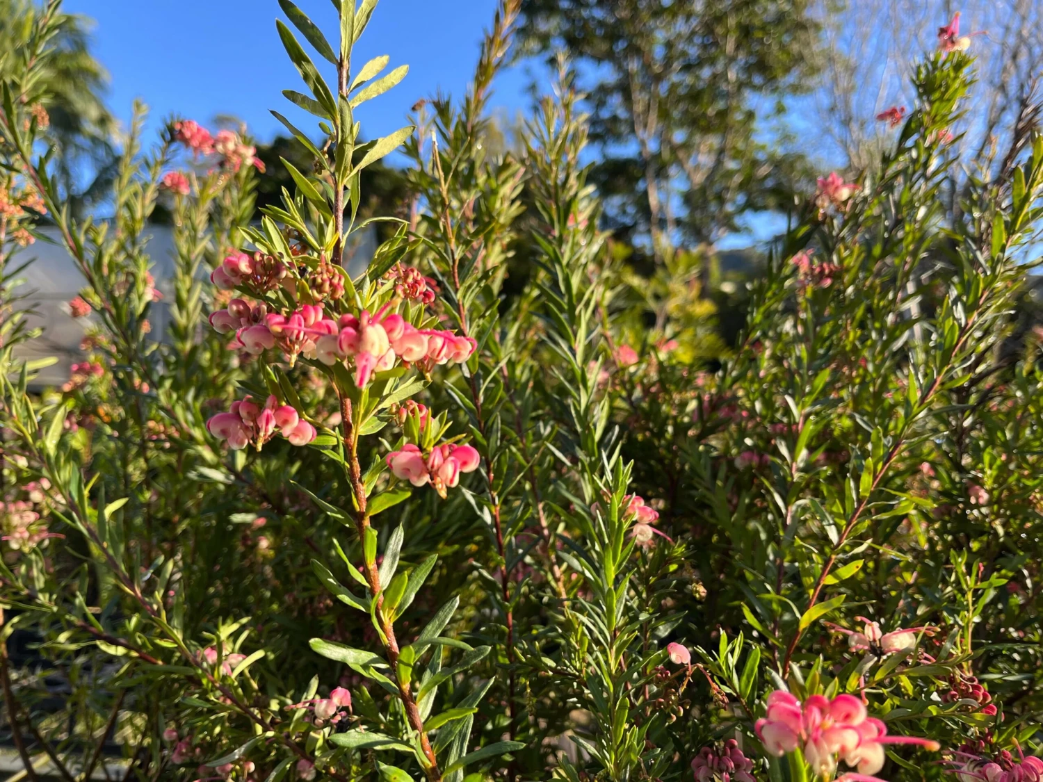 A small shrub with an upright to lightly spreading habit; soft grey-green leaves with striking bronze new growth. Gorg pink and white flowers grow on the end of the branches from winter through spring to early summer. A charming hedge or border plant, or just grow amongst other bird habitat plantings. Stunning when grown in a feature pot. Tolerates medium frost and dry spells
