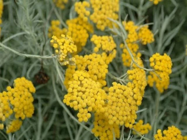 Helichrysum italicum is also known as the curry plant because when crushed their leaves smell like curry! This little shrub has beautiful slender silver foliage and is super hardy preferring full sun and not much water. In summer this little guy produces clusters of small yellow flowers which sit nicely against the silver foliage.