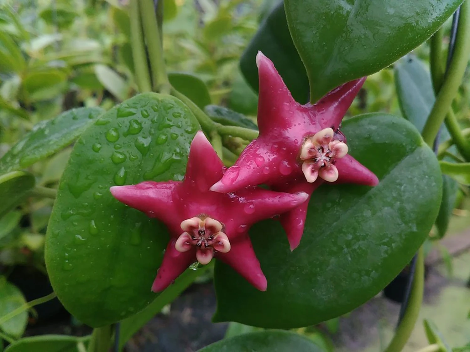 Red is super hard to come by, but we were lucky enough to have her join our potting sheds. She has glossy green leaves that trail and climbs like a true hoya, but the real show stopper is, of course, the star-shaped “Red” waxy flower.Â