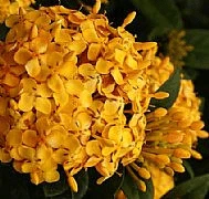 Ixora Gold Malay has golden flowers and puts on a great display in the warmer months of the year. The foliage is fleshy with dark green leaves. Green and Gold – nice. It is a great plant for creating small hedges and edges, growing to about 1 metre tall.