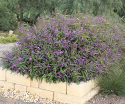 is a super hardy, fast growing native ground cover / creeper. It has slender, long green leaves that twine and climb creating the perfect backdrop for the purple flowers that appear in mass from July- September. The ‘Meema’s’ flowers last longer then Hardenbergia violacea and it has a nice tidy form that doesn’t need to be constantly maintained.