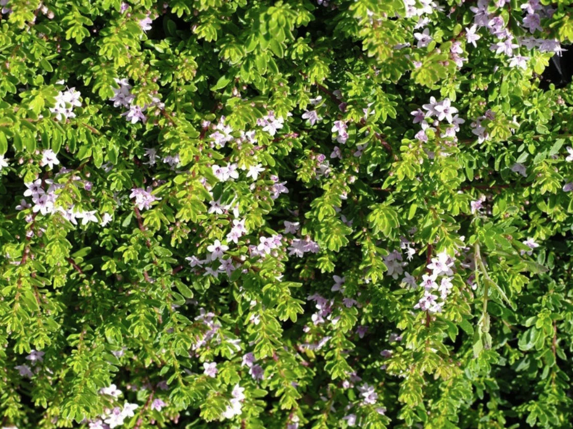 This baby looks beautifully mixed in with the white version Myoporum parvifolium if we do say ourselves.