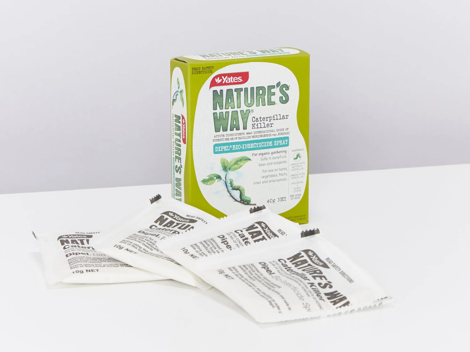 Yates Nature’s Way Caterpillar killer provides an easy way to organic gardening. This product is approved for use in organic gardening.