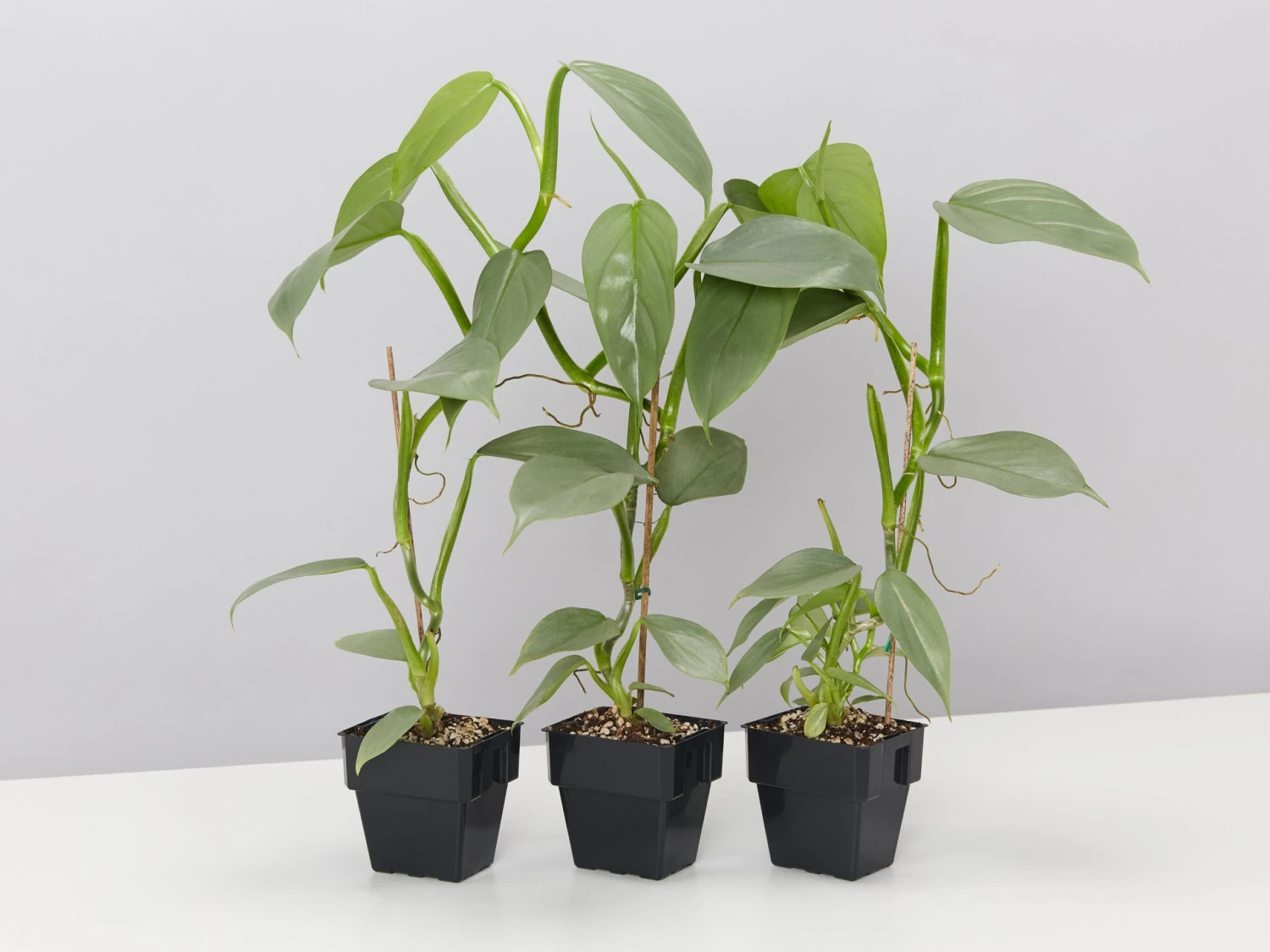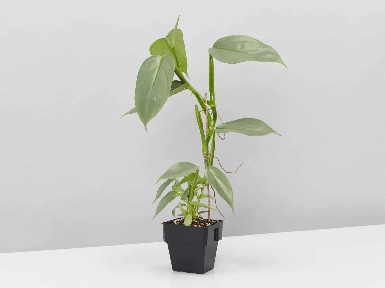 Philodendron hastatum “Silver Sword” aka Silver Sword Philodendron – thanks to his silver, almost metallic sword-shaped leaves. This knight and shining-foliage plant will remove toxins from your room air as he stands guard. Best-grown in medium light, though lower light levels are acceptable.
