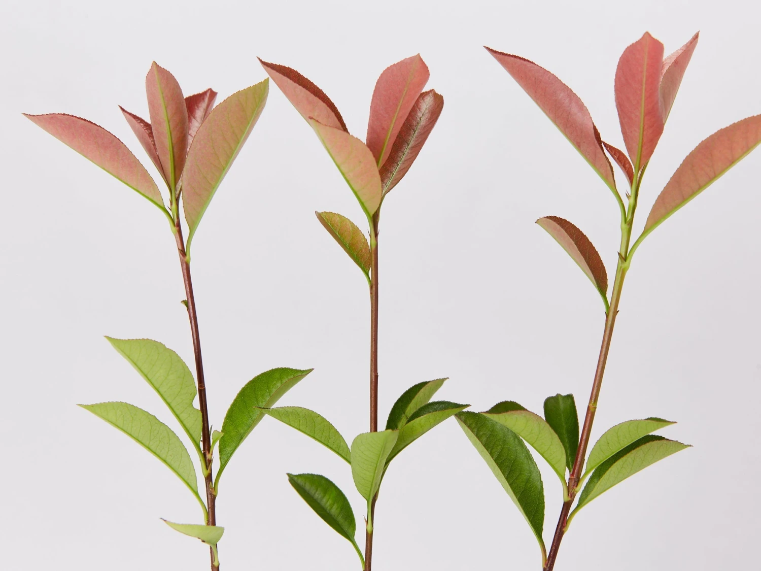 Photinia Glabra Rubens is a hardy evergreen shrub with large glossy green leaves that emerge bright ruby red in Springtime. Soon after the scarlet foliage appears, small white flowers arrive. Clip to shape regularly for maximum colour or leave to enjoy the white flowers. Glabra rubens has a less dense growth habit than Red Robin, making it a popular choice as a light screen.