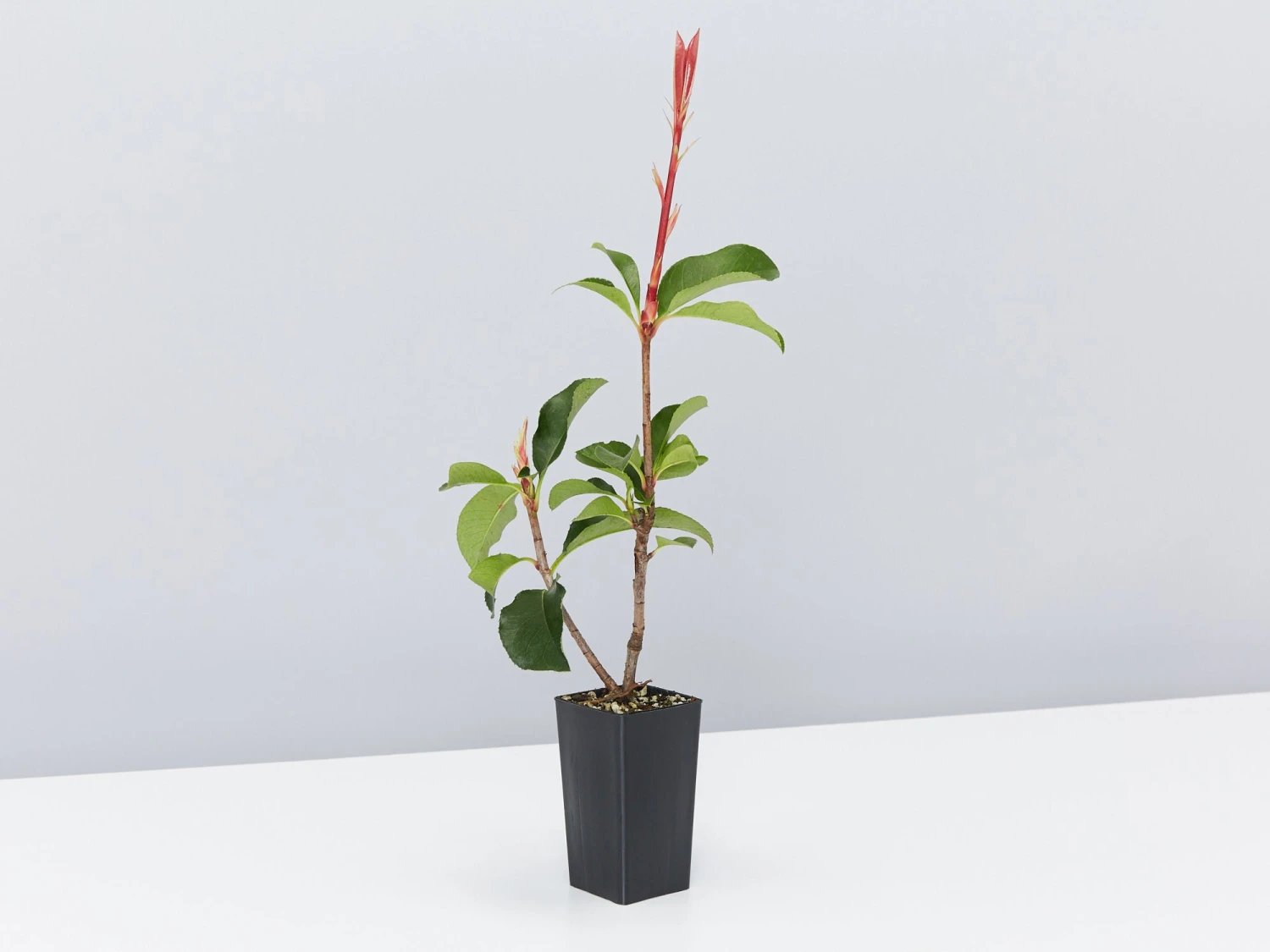 ‘CP01’  is similar to the regular Photinia but half the work! This guy is a compact Photinia and is perfect for creating privacy in your backyard. Its new red leaves stand out beautifully against the tiny white flowers and dark green crinkled leaves. The best thing is it only needs pruning once a year.