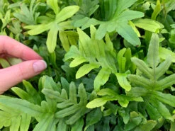 Polypodium Whitley Giant is a beautiful, hardy fern with dark green arching fronds. This little guy loves humidity so will do really well in a bathroom – softening those hard edges with his delicate form.Â