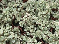 It’s not only elephants that like this pretty succulent. It has attractive reddish-brown stems and smooth fleshy green leaves that reach two centimetres long. The chief attraction of this sprawling slow-growing succulent is the heavy cream variegation that edges every little leaf.