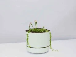 Pearls get all the girls! Senecio rowleyanus aka The String of Pearls is a super popular trailing succulent, she is suitable for bubbly brightly lit indoor areas or semi-shaded outdoor positions. Grown as a hanging plant for her cascading dense curtain. She’s an “aw I like that one” kinda plant.Â
