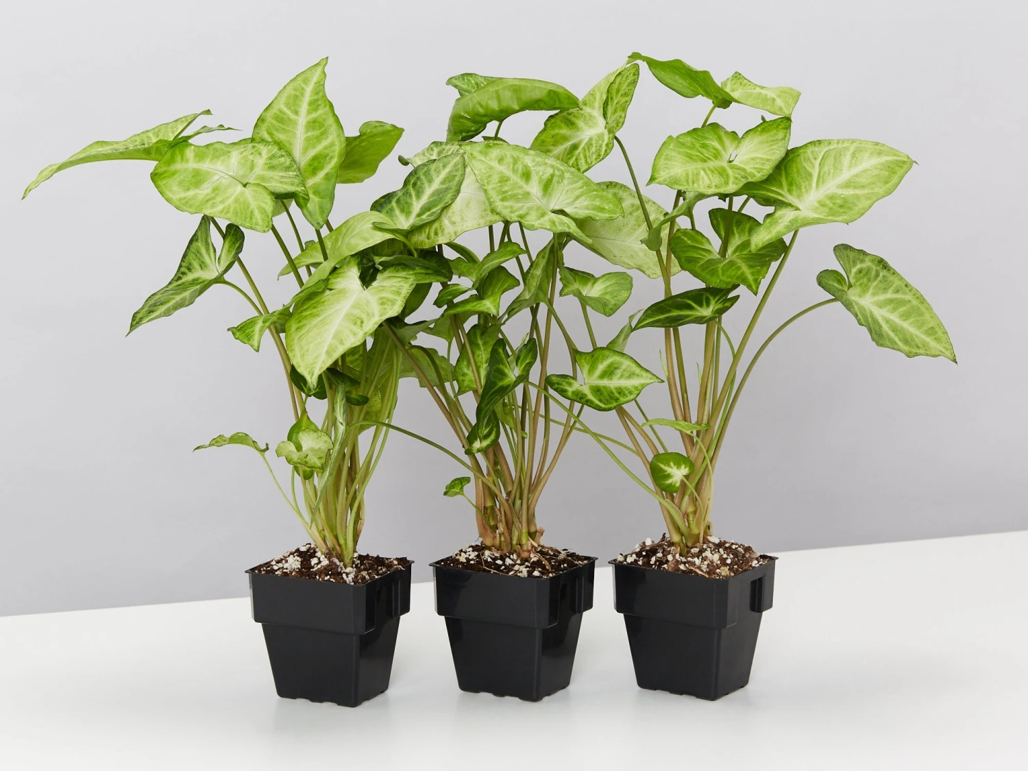If you are after a low maintenance, air purifying, versatile, climbing or hanging houseplant the Syngonium podophyllum Green Pixie is probably the one for you. With creamy white arrow-shaped leaves and green margins this little babe is a great addition to a green wall, as an indoor houseplant, and looks the part in a tropical garden.Â