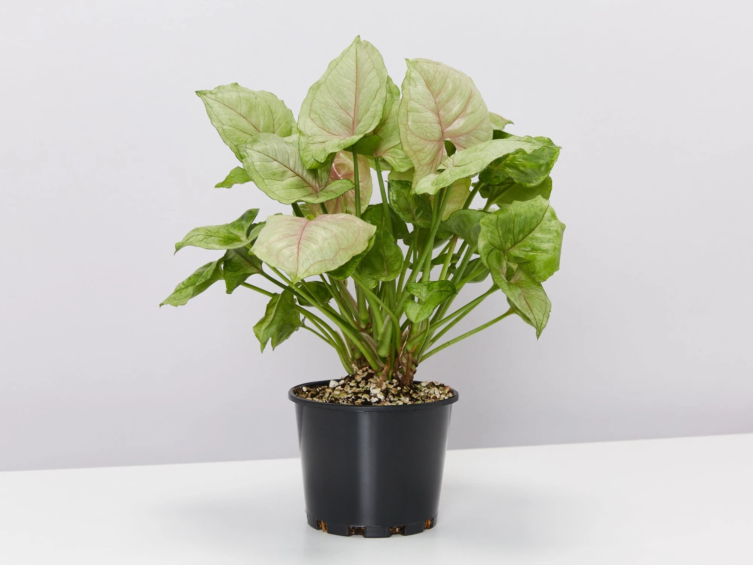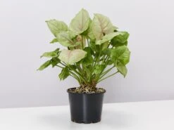 Roxana is beautifully marked with white-green foliage edged in dark green and stand-out pink veins on an arrowhead-shaped leaf. So, that’s colour and great shapes in one serving. What more could you want from an easy-going party gal?
