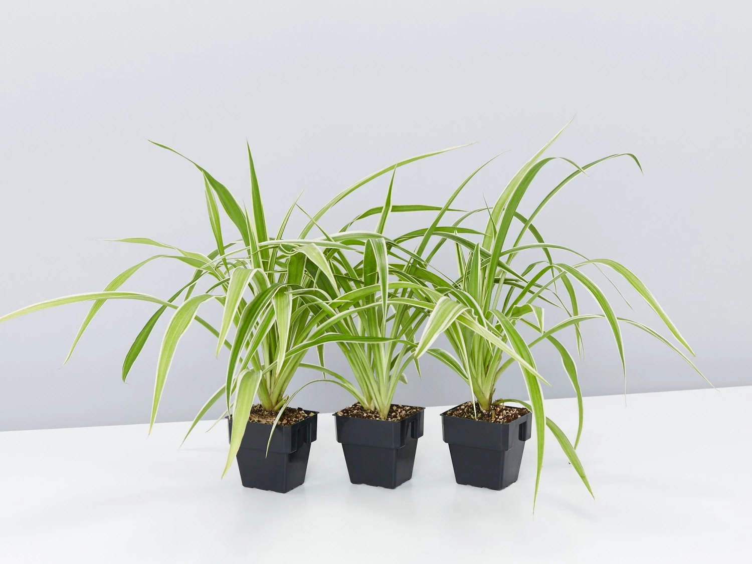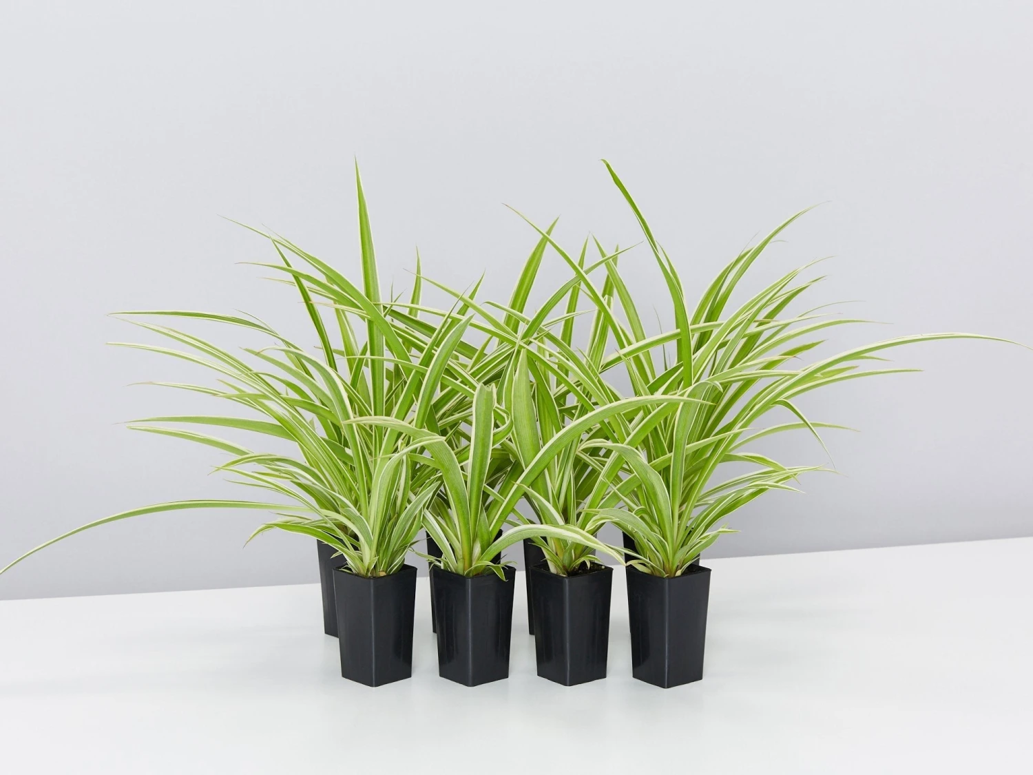 Chlorophytum comosum variegatum is commonly known as the Spider Plant and is the compact variegated form of the popular Spider Plant. The Variegated Spider Plant is a compact strappy plant with great trailing foliage and white edges of dark green leaves, super low maintenance and easy to care for.Â
