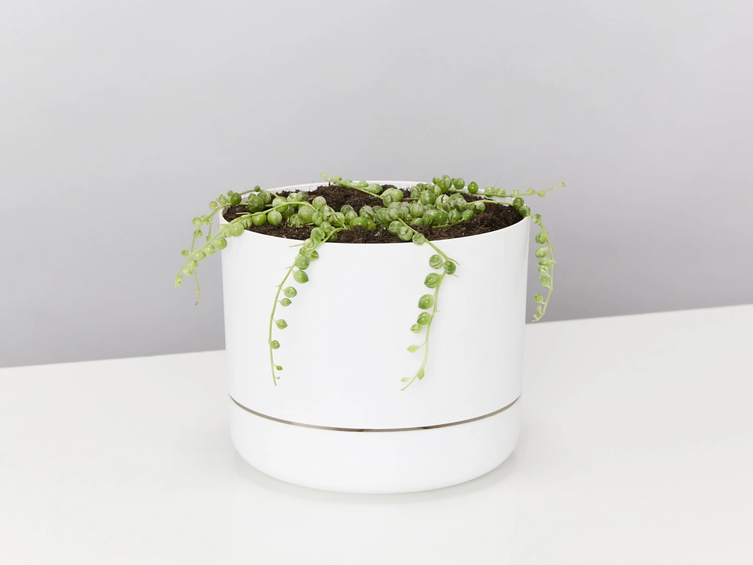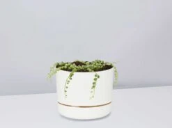 Senecio Rowleyanus Variegata AKA Variegated String of Pearls. He’s the variegated version of the famous String of Pearls. A trailing succulent, suitable for brightly lit indoor areas or semi-shaded outdoor spots. He is grown as a hanging plant for his dense cascading curtain pearls. *Please note we can not ship the soil with this product.